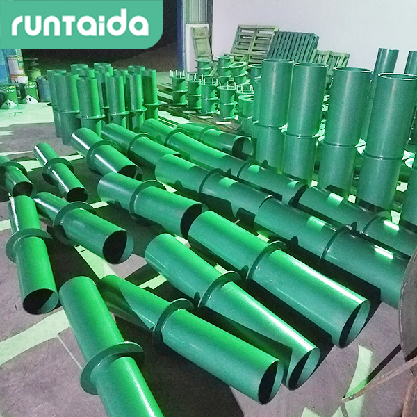 2、翼環及鋼套管加工完成后,在其外壁均刷底漆一遍(底漆包括樟丹或冷底子油)。